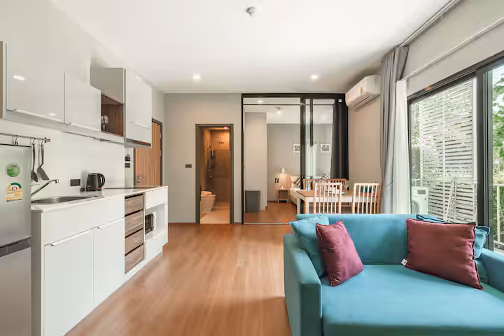 Welcome to your Phuket sanctuary. This stylish 1-bedroom condo is located on the ground floor with direct pool access and calming garden views. Just a 300m walk to Rawai Beach, it’s perfect for couples or solo travelers seeking comfort, relaxation, and a touch of tropical living. ✨