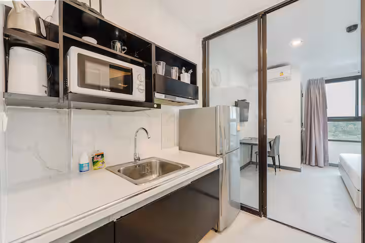 • Kitchenette – Equipped with fridge, microwave, and basic cookware—great for simple meals and snacks.