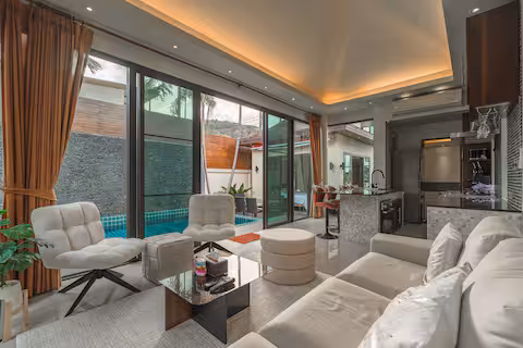 Welcome to your tropical hillside escape in Chalong — a stylish, fully equipped 2-floor villa with private pool, jacuzzi, and breathtaking mountain & pool views from every bedroom. Located just minutes from Big Buddha and close to top Phuket attractions, gyms, shopping malls, restaurants, and beaches, this villa offers the perfect blend of comfort, privacy, and convenience.