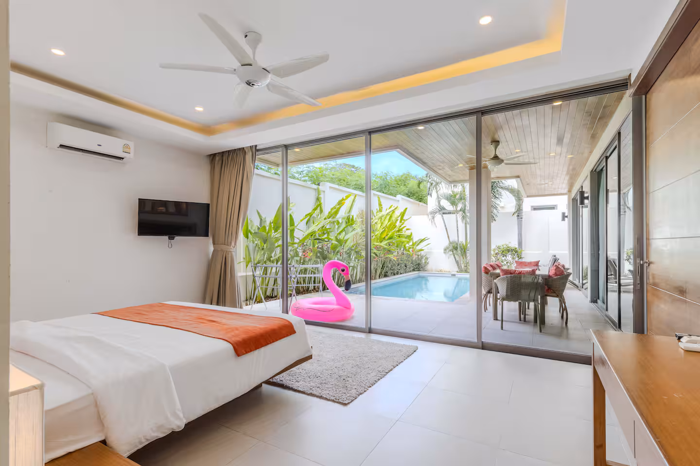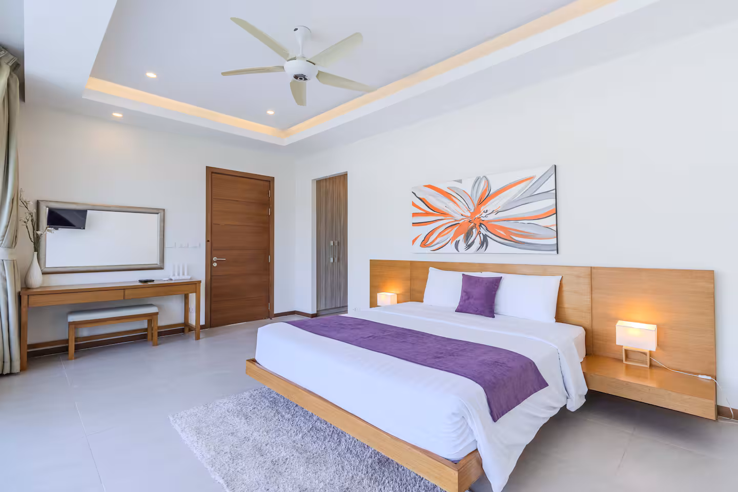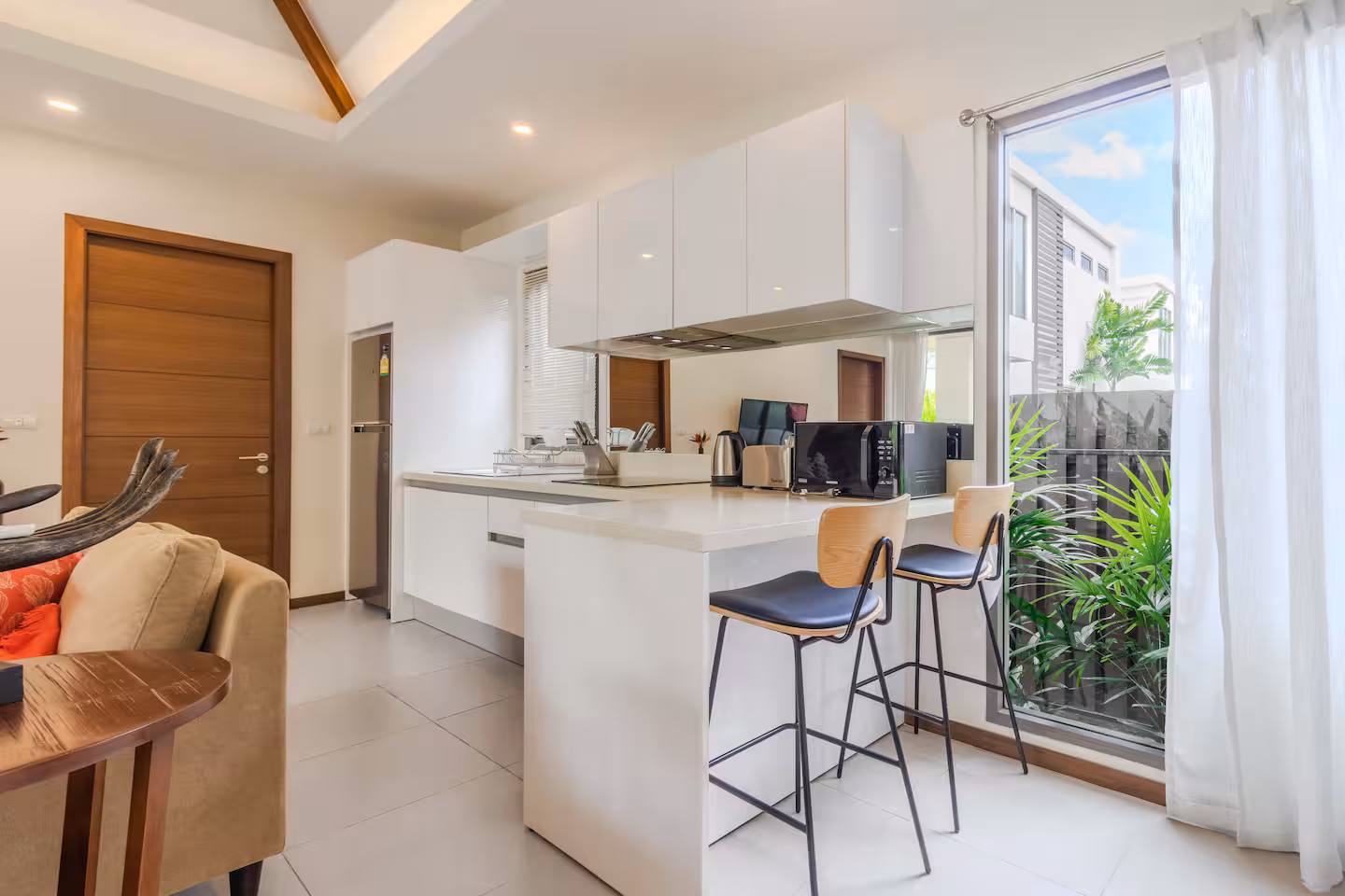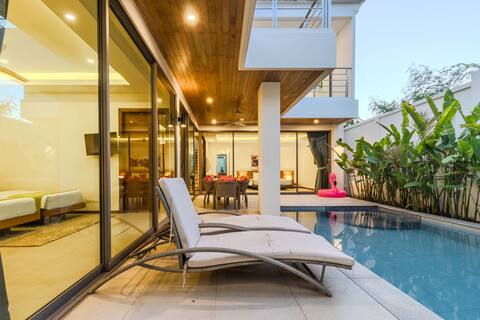 🌴Experience modern luxury at this 4BR private pool villa in Rawai. Perfect for up to 8 guests, each bedroom has an ensuite bathroom. Enjoy an open-plan living area, fully equipped kitchen, private pool with Jacuzzi, and lush garden. Located just minutes from Rawai and Nai Harn beaches, restaurants, and shopping. A secure gated estate with 24-hour security ensures peace of mind—ideal for families and groups.