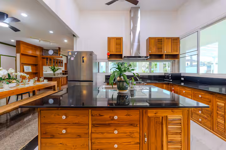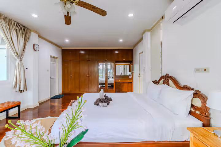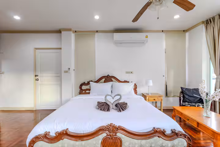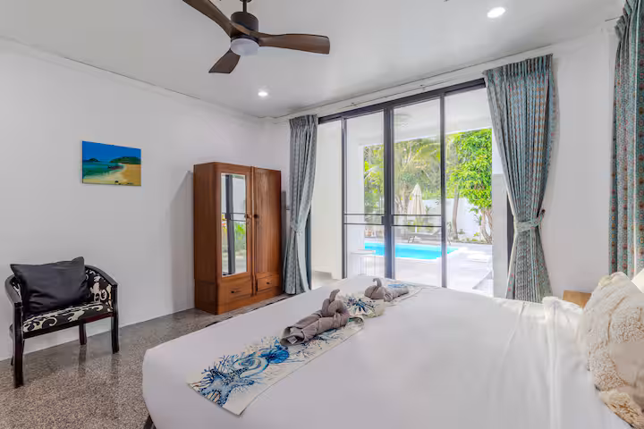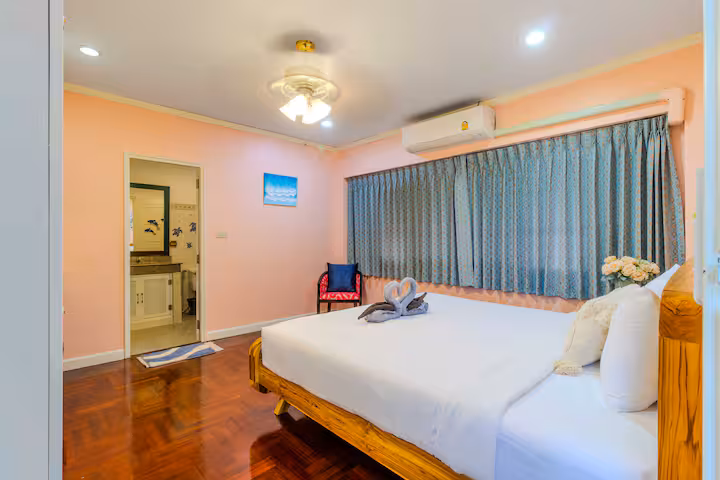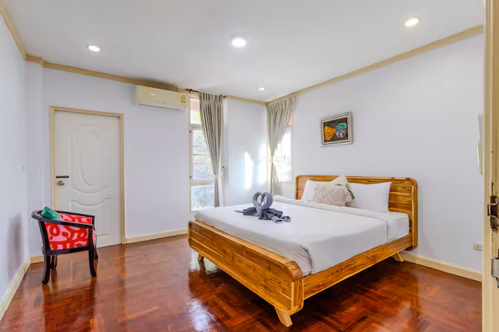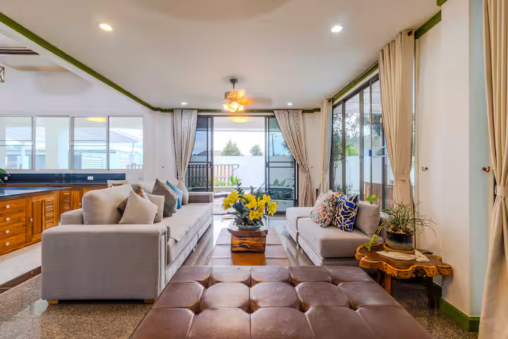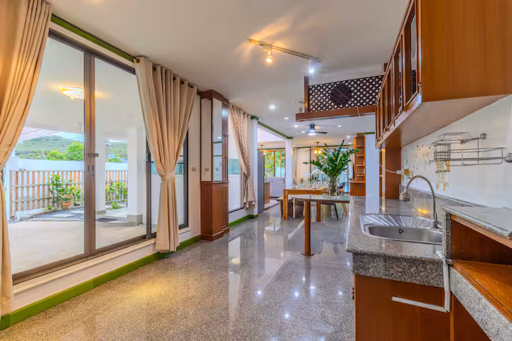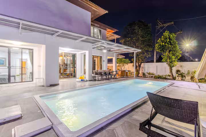 Welcome to your tropical home in Phuket! This bright and beautifully designed 4-bedroom private pool villa is perfect for families, friends, and long-term guests who love space, comfort, and a relaxed lifestyle. Set in a peaceful neighborhood just minutes from Robinson shopping mall, local shops, and restaurants, everything you need is right at your doorstep.