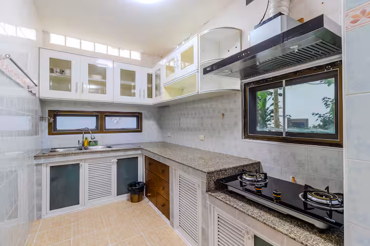 Enjoy plenty of room to relax and unwind. The villa features 4 large bedrooms, each with a king-size bed, and 5 bathrooms, including one with a bathtub for added comfort. You’ll also have 2 spacious living rooms, 2 dining areas, and 2 fully equipped kitchens — perfect for cooking, dining, and spending time together.